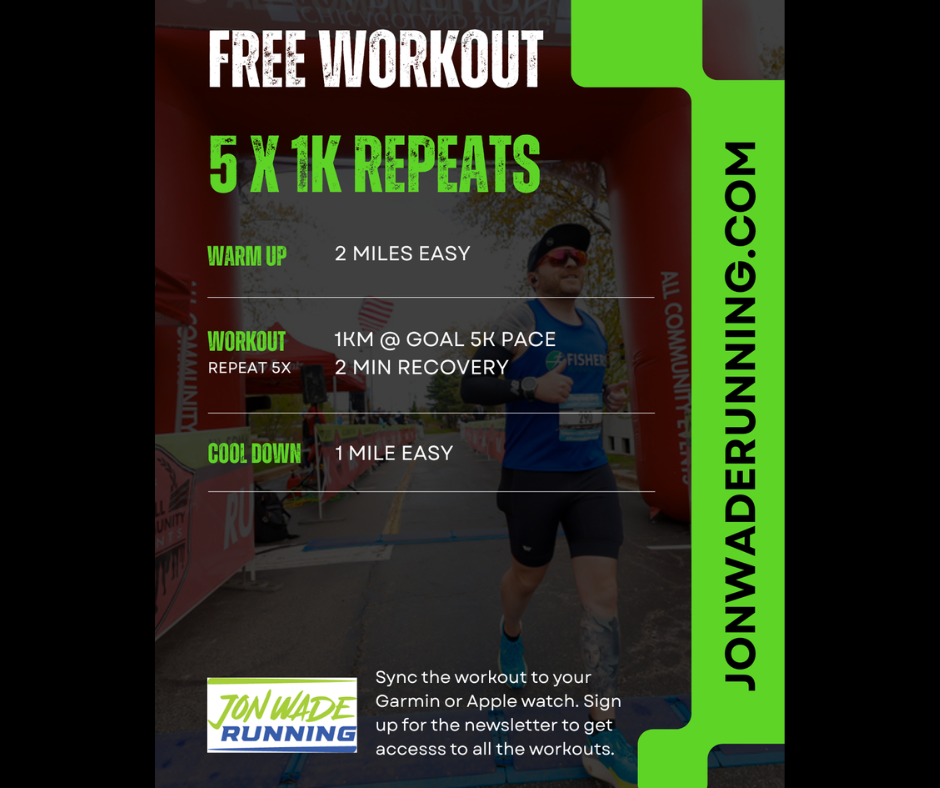 Have a need for speed? Try out this simple 5X1k Repeat Workout! Best for the track but you can do it on the road