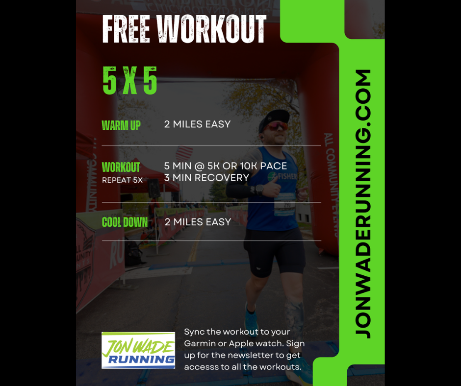 Take this Free Workout! Pick up the pace a bit with the 5×5 workout. Perfect for the track or road. The